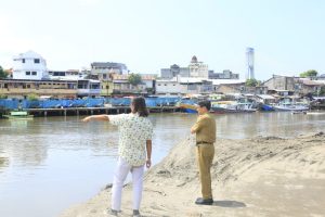 Lokasi pertama yang dikunjungi Wali Kota adalah Jembatan Megawati. Di sini, Wali Kota meninjau proses pengerjaan dan pengerukan yang sedang dilakukan, serta melihat gabus apung yang dipasang untuk menyaring sampah.