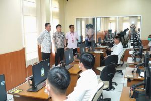 Setelah membuka acara secara resmi Bupati Franky Donny Wongkar, SH meninjau langsung pelaksanaan seleksi yang didampingi Kepala Bagian Tata Usaha Kantor Regional XI BKN Manado, Bpk. Jovinus Jefry Montolalu., Kaban BKPSDM Minahasa Selatan Sonny Makaenas, AP., SIP., M.Si., Kepala Dinas Kominfo Minsel Tusrianto Rumengan., S.STP.,M.Si (