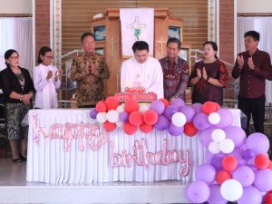 MINSEL, CS – Bupati Minahasa Selatan, Franky Donny Wongkar, SH dan Wakil Bupati Minahasa Selatan, Pdt. Petra Yani Rembang M.Th, bersama Ibu Juliwati Rembang, menghadiri Ibadah Syukur HUT Ke-22 Jemaat GMIM Bethesda Ongkaw dirangkaikan dengan Pentahbisan dan Peresmian Gedung Konsistori Jemaat GMIM Ongkaw di Desa Ongkaw Satu Kecamatan Sinonsayang, Minggu ( 23/04/2023)