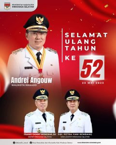 Bukan hanya itu Bupati dan Wakil Bupati Minsel serta Rajan Pemkab Minsel mengucapkan selamat HUT ke – 52 pada hari yang sama kepada Walikota Manado Andrei Angouw yang tepat hari yang sama 23 Mei 2023 bersama dengan 4 Daerah yang juga merayakan HUT ke – 16 tentu menjadi Hari yang bersyukur dan Berbangga atas Berkat Tuhan ini.