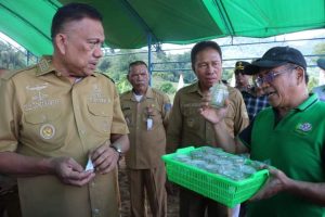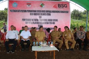 MINSEL, CS – Bupati Minahasa Selatan Franky Donny Wongkar, SH., menghadiri Kegiatan Peletakkan Batu Pertama Pembangunan Screen House Modoinding Kanaan Hebat oleh Gubernur Sulawesi Utara dan Penyerahan Kegiatan Tanggung Jawab Sosial dan Keuangan Berkelanjutan (TJS-KB) kepada Koperasi Konsumen Modoinding Kanaan Hebat serta Penyerahan Bantuan Pupuk dan Bibit dari Pemerintah Provinsi Sulawesi Utara kepada petani, bertempat di Perkebunan Rony Maindoka, Modoinding, Selasa ( 13/06/2023)