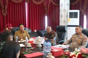 MINSEL, CS  –  Bupati Minahasa Selatan, Bpk. Franky Donny Wongkar, SH., memimpin Rapat Forkopimda Kabupaten Minahasa Selatan, bersama FKUB dan BKSAUA bertempat<span;> di Kantor Bupati Minahasa membahas terkait Pengucapan Syukur, Senin, 3 Juli 2023