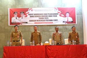 ” Bagian penting dari kegiatan ini adalah bagaimana kita berpihak pada perkembangan SDM dibarengi dengan Fasilitas yang ada , dan Harus Majukan Pendidikan menjadi bagian dari tanggung jawab kita semua , terciptanya suasana yang Kondusif dan untuk DAK itu harus dilaksanakan sesuai Kontrak dan Kwalitasnya dijamin sesuai Juknis dan aturan yang berlaku , untuk itu dengan Memanjatkan Puji Syukur Kepada Tuhan Saya membuka Kegiatan inj ” jelas FDW sembari membuka Rakor tersebut.
