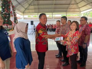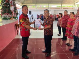 Penyerahan Sertifikat Tanah Pemerintah Kabupaten Minahasa Selatan, dari Kepala Kantor Pertanahan Kabupaten Minahasa Selatan Ibu Latri Sukriningsih, A.Ptnh., M.Eng.