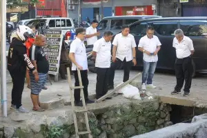 Setelah menyelesaikan peninjauan di area tersebut, Wali Kota melanjutkan ke Stadion Klabat, fokus pada peninjauan perbaikan saluran air dan pembuatan tanggul di pertigaan depan Stadion Klabat.
