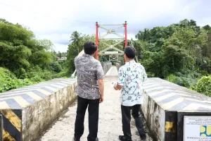 Pertama, Wali Kota mengunjungi Jembatan Gantung Kairagi di Kelurahan Kairagi Satu. Dia memeriksa keadaan jembatan gantung yang menghubungkan Kelurahan Kairagi Satu dan Kelurahan Kairagi Weru, terutama fokus pada kondisi jembatan di area yang rentan terhadap longsor.