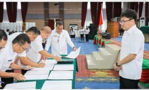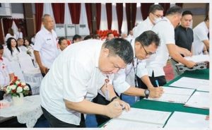 Acara dilanjutkan dengan penandatanganan perjanjian kinerja dan pakta integritas oleh Wali Kota, Sekretaris Daerah Kota Manado, Bapak Dr. Micler Lakat, S.H., M.H., bersama dengan para Asisten, Staf Ahli Wali Kota, Kepala SKPD, Kabag Setda Kota Manado, para Camat, serta Direktur RSUD dan RSKGM Kota Manado. (adve)