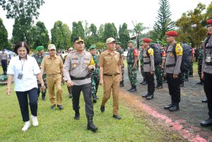 MINSEL, CS – Bupati Minahasa Selatan Franky Donny Wongkar, SH., Menghadiri apel pergeseran pasukan (serpas) personel pengamanan TPS dan doa lintas agama dalam rangka kesiapan pengamanan Pemilu 2024 bersama KPU, Bawaslu, TNI, Pemerintah Kabupaten Minsel serta Linmas.