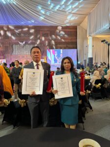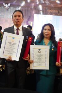 Bupati Minahasa Selatan dan Ketua TP. PKK Kabupaten Minahasa Selatan menerima Tanda Penghargaan Manggala Karya Kencana.