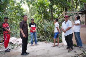 MINSEL, CS – Bupati Minahasa Selatan Franky Donny Wongkar, SH., Pada Sabtu, 20 Juli 2024 didampingi Camat Amurang, Lurah Lewet, Lurah Uwuran Satu dan Kepala Lingkungan 6 Kelurahan Lewet mengunjungi Warga Kelurahan Lewet Kecamatan Amurang yang rumahnya rusak parah akibat Pohon Tumbang dan menimpa rumah warga yakni Ibu Rensi Dalendeng Pada Jumat 19 Juli 2024.