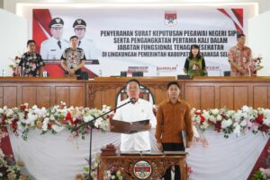 MINSEL, CS – Bupati Minahasa Selatan Franky Donny Wongkar, SH., Pada Jumat, 13 September 2024 Menyerahkan SK PNS dan mengambil Sumpah/Janji PNS dan Pengangkatan Pertama dalam Jabatan Fungsional Kesehatan serta Pencanangan E-Kinerja di lingkungan Pemerintah Kabupaten Minahasa Selatan, bertempat di Aula Waleta Kantor Bupati Minahasa Selatan.