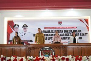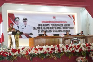 MINSEL, CS – Bupati Minahasa Selatan Franky Donny Wongkar, SH., Pada Selasa, 17 September 2024 Membuka Kegiatan Sosialisasi Peran Tokoh Agama dalam Gerakan Masyarakat Hidup Sehat di Kabupaten Minahasa Selatan dan meluncurkan Proyek Perubahan Sistem Layanan Masyarakat dan Administrasi Keagamaan Terintegrasi “Salam Damai”, bertempat di Aula Waleta Kantor Bupati Minahasa Selatan.