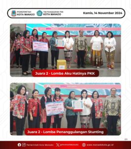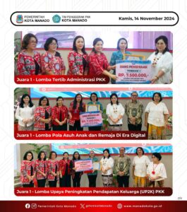 CakrawalaSulut, Manado, 15 November 2024 – Pemerintah Kota Manado terus menorehkan prestasi, kali ini melalui Tim Penggerak Pemberdayaan Kesejahteraan Keluarga (TP-PKK) Kota Manado yang berhasil meraih sejumlah penghargaan dalam ajang Jambore Kader PKK Provinsi Sulawesi Utara Tahun 2024. Kegiatan ini dilaksanakan di Aula Mapalus, Kantor Gubernur Sulawesi Utara, pada Jumat, 15 November 2024.