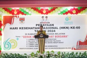 MINSEL, CS – Bupati Minahasa Selatan Franky Donny Wongkar, SH., Menghadiri Kegiatan Perayaan Hari Kesehatan Nasional (HKN) Ke-60 Tahun 2024 di Kabupaten Minahasa Selatan, bertempat di Aula Waleta Kantor Bupati Minahasa Selatan, Senin ( 25/11/2024)