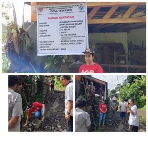 MINSEL, CS – Kegiatan Dana Desa Tewasen Kecamatan Amurang Barat sangat dinanti Warga , karena setiap Tahun ada Penambahan sejak dipimpin Penjabat Hukum Tua Desa Tewasen Meyti Pulingkareng SE sangat terasa Pembangunan lewat Dana Desa ( Dandes ) , apalagi saat ini telah dilaksanakan Kegiatan Pembangunan Jalan dengan Paving Blok dengan Panjang 104 dan Lebar 3 Meter