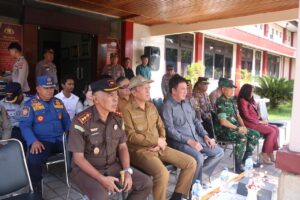 Turut hadir Forkopimda Kabupaten Minahasa Selatan : Ketua DPRD Kabupaten Minahasa Selatan Bpk. Stefanus D. N. Lumowa, SE., Kajari MInahasa Selatan Bpk. La Ode Muhammad Nusrim, SH., MH., Ketua Pengadilan Negeri Amurang Ibu Junita Beatrix Ma’i, SH., MH., Dandim 1302 Minahasa yang diwakili Perwira Penghubung Bpk. Mayor Infantri Rekom Mulyadi: dan Jajaran Polres Minahasa Selatan.