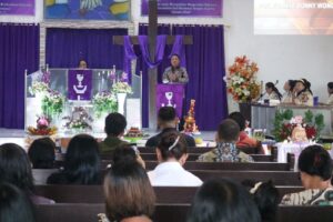 Dalam Ibadah Syukur HUT Ke-27 Jemaat GMIM Maesa Rumoong Bawah Wilayah Amurang Dua yang menjadi Khadim Ibadah Pdt. Jefry Saisab, S.Th. M.Si selaku Wakil Sekretaris Koordinator Program Kompelka dan Lansia GMIM.