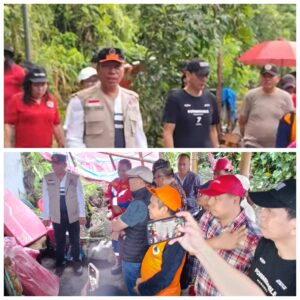 Serahkan Bantuan , Bupati FDW dan Jajaran Tinjau Lokasi Longsor di Desa / Kelurahan Rumoong Bawah
