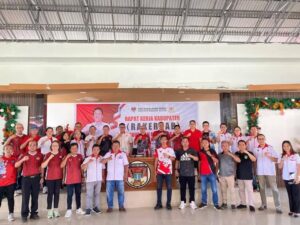 MINSEL, CS – Bupati Minahasa Selatan Franky Donny Wongkar, SH Selaku Ketua Umum KONI Kabupaten Minahasa Selatan, melantik Panitia Pekan Olahraga Kabupaten (PORKAB) III Tahun 2025, bertempat di Aula Waleta Kantor Bupati Minahasa Selatan, Jumat ( 25/04/2025)
