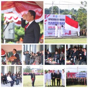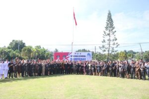 MINSEL, CS – Pemerintah Kabupaten Minahasa Selatan Pada Jumat, 2 Mei 2025 Menggelar Upacara Bendera Peringatan Hari Pendidikan Nasional Tahun 2025 dirangkaikan dengan Apel Kebangsaan Aparatur Sipil Negara Pemerintah Kabupaten Minahasa Selatan, bertempat di Lapangan Upacara Kantor Bupati Minahasa Selatan.