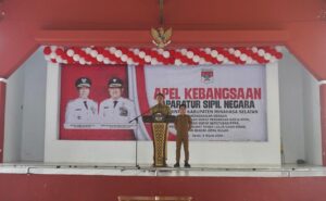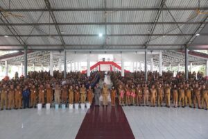 MINSEL , CS – Bupati Minahasa Selatan, Franky Donny Wongkar, S.H., menghadiri sekaligus memimpin Apel Kebangsaan Aparatur Sipil Negara (ASN) Pemerintah Kabupaten Minahasa Selatan Bulan Maret Tahun 2026 yang dilaksanakan di Aula Waleta, Kantor Bupati Minahasa Selatan, Senin ( 02 /03/2026 )