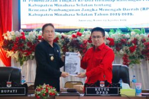 Dalam kesempatan tersebut Bupati Minahasa Selatan Franky Donny Wongkar, SH hadir untuk menyampaikan Penjelasan tentang Rancangan Peraturan Daerah Kabupaten Minahasa Selatan tentang Penyertaan Modal Daerah Kepada PT. Bank SulutGO dan Pendapat Akhir Kepala Daerah Rancangan Peraturan Daerah Kabupaten Minahasa Selatan tentang rencana pembangunan jangka menengah Daerah (RPJMD) Kabupaten Minahasa selatan Tahun 2025-2029